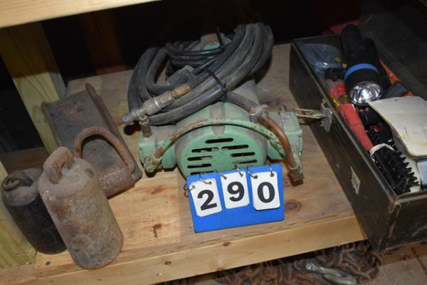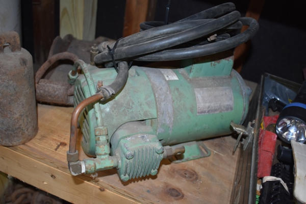 Lot of tools including air compressor, weights, toolbox