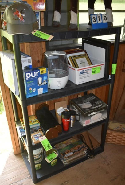 Approx. 3' wide plastic shelving unit