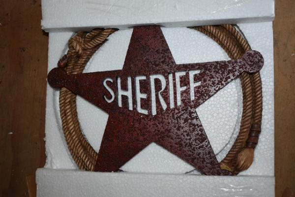 Lot includes 2 sheriff's stars and decorative wall hangings