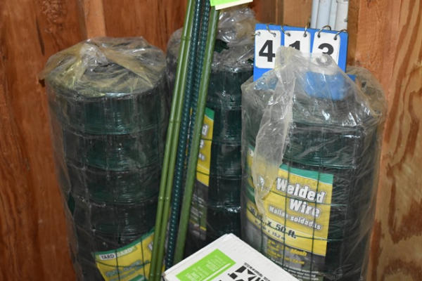 Corner lot including Dig In approx. 35' of edging, wire fencing, flower pot, etc.