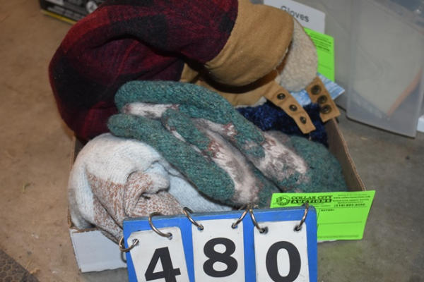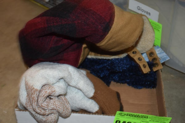 Lot consisting of handmade wool mittens, new gloves and ear flap hat
