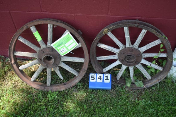 Lot of 2 vintage wood spoked wagon wheels