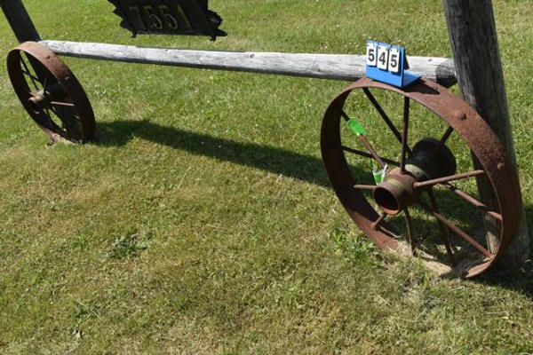 Lot of 2 metal spoked wagon wheels