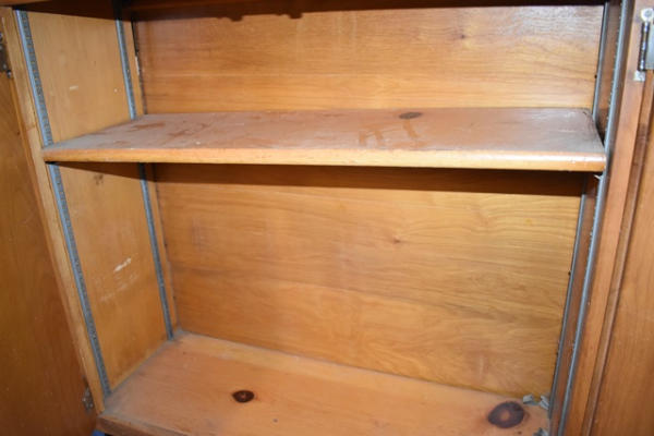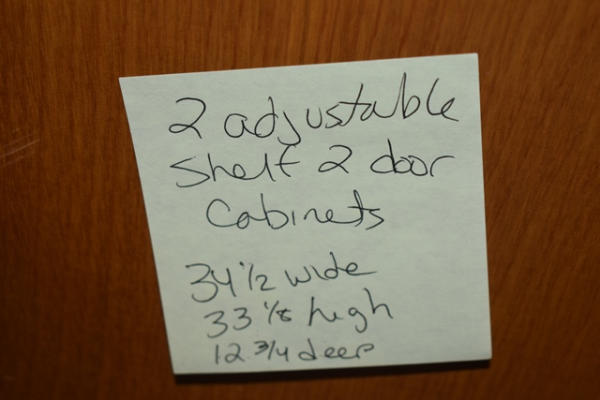 Lot of 2 adjustable shelf 2-door cabinets, 34 1/2" wide x 33 1/2" tall x 12 3/4" deep