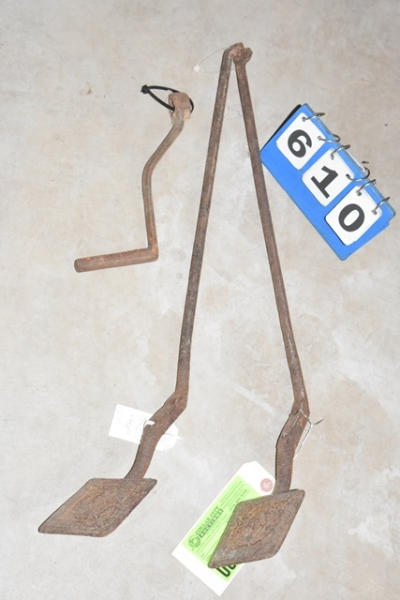Lot of old hand cranks, 8" handle, 4" handle and 2 wagon steps