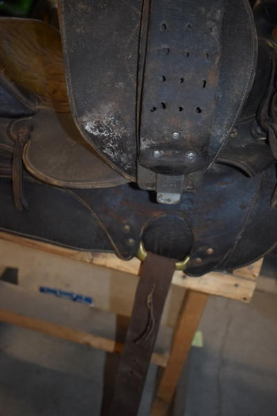 Heavy duty bulldogging saddle, built rugged, missing a fender, 16" seat, 6" gullet