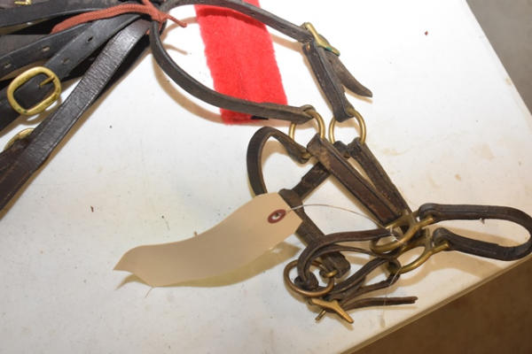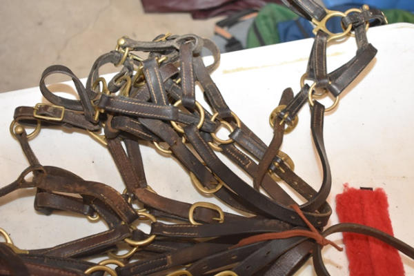 Lot of 9 B mini or foal size leather halters, size 1, adjustable nose and crown
