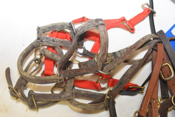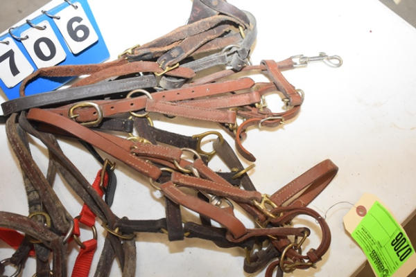 Lot of 7 leather and 1 nylon breakaway mini/foul halters