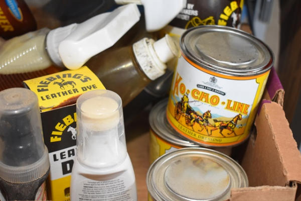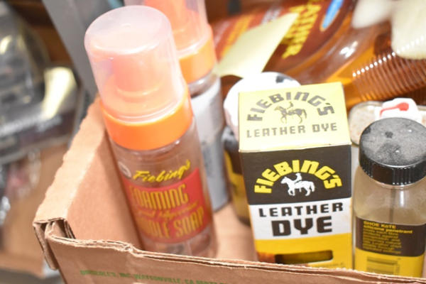 Lot consisting of Leather Dye, Fiebings Oil, Saddle Soap, etc. (SEE LAST PHOTO FOR DETAILED LIST)
