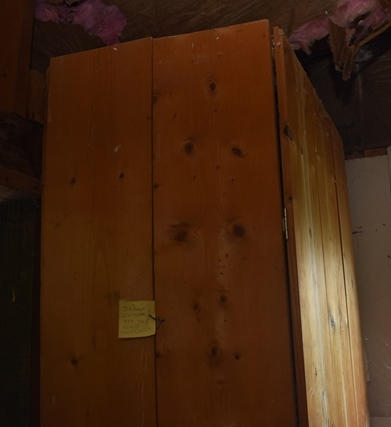 4-shelf wooden cabinet, approx. 34" deep x 24" wide x 9' tall (CANNOT BE REMOVED UNTIL END OF SECOND DAY OF REMOVAL)