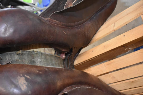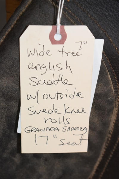 Wide tree English saddle with outside suede knee rolls, Grenada Saddlery 17" seat