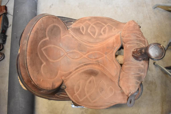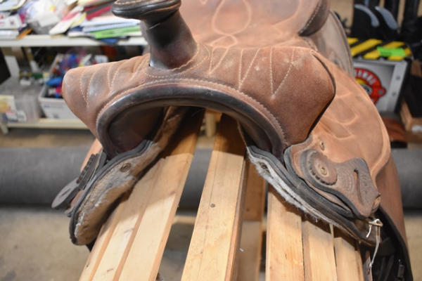 Blue Ridge Saddlery suede out seat and top fenders, with rounded skirt, Model 2000, 15" seat, 8" gullet