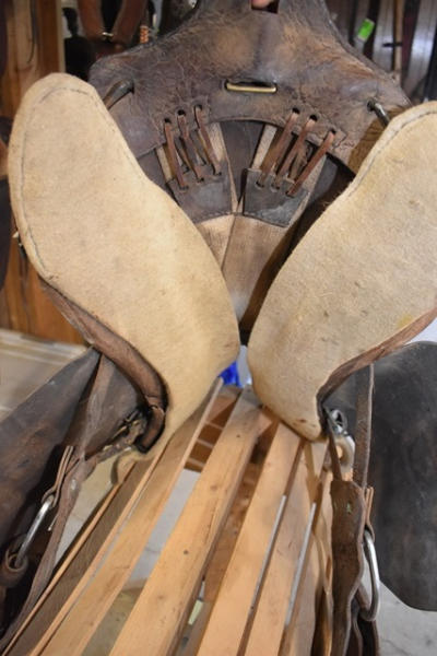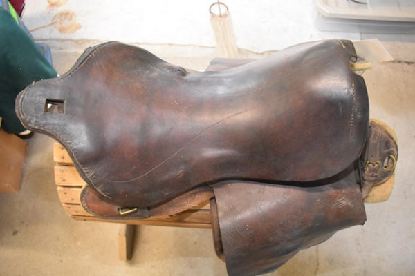 Trooper saddle with a wooden tree, felt lined and brass fittings