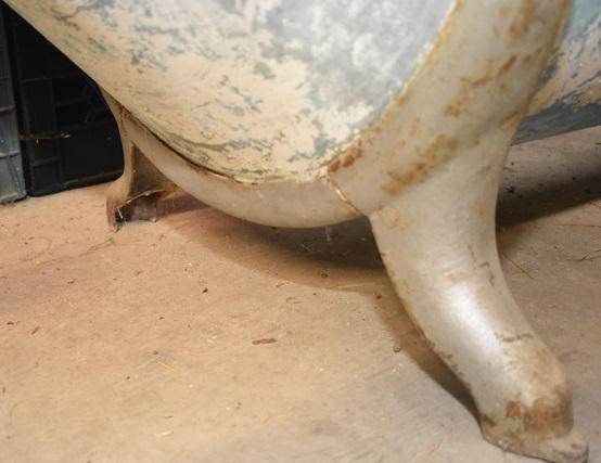 Vintage tub with wooden top rail with faucet
