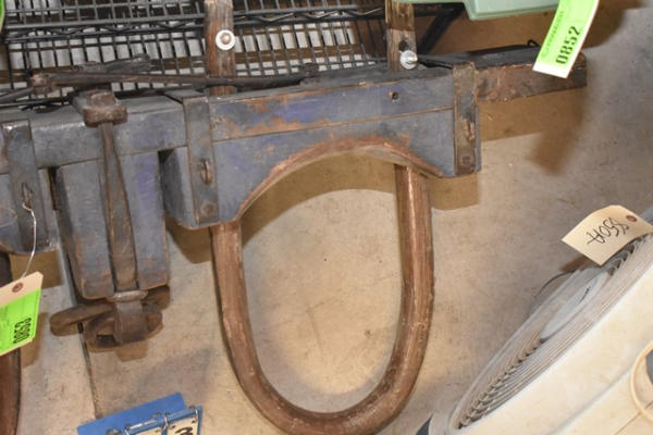 Oxen yoke, 52" with adjustable neck yoke, wood and iron fittings