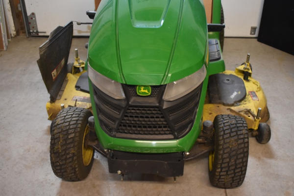 John Deere X320 riding tractor, 54" deck (edge cutting system), 22 HP gas engine, approx. 700 hours, includes 2 keys, manual and a new deck protector, Hydrostatic drive, starts and moves