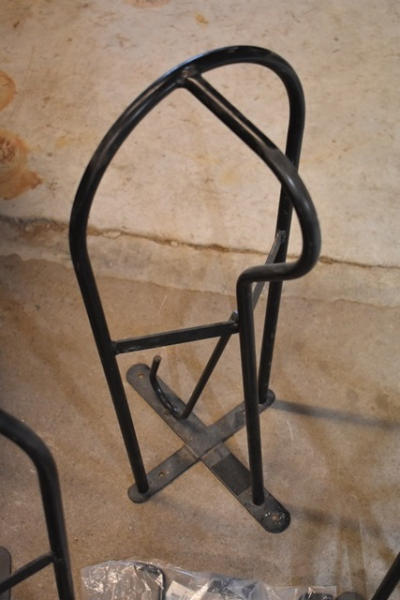 Lot of 3 wall mount saddle racks, 1 collapsible saddle rack