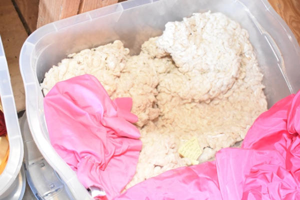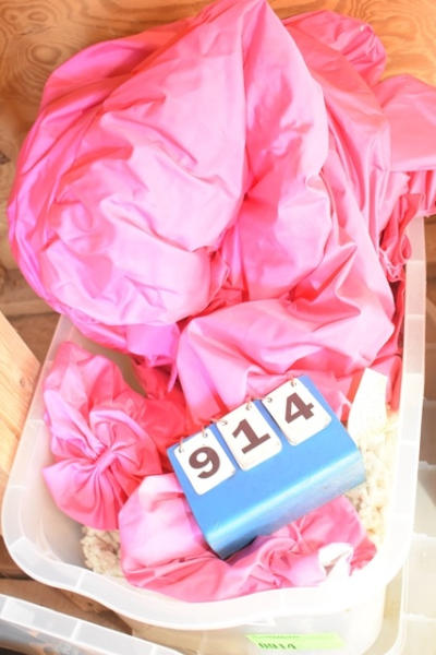 Costumes of Bo Peep mini horse costume with lambs wool sewn into mini Slinky, comes with pink dress and matching hat, size is adult medium, for miniature horses