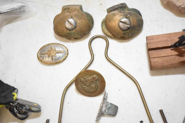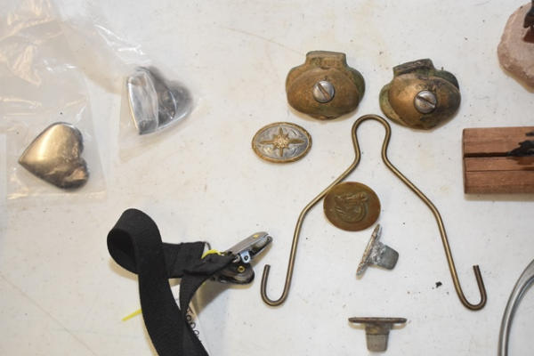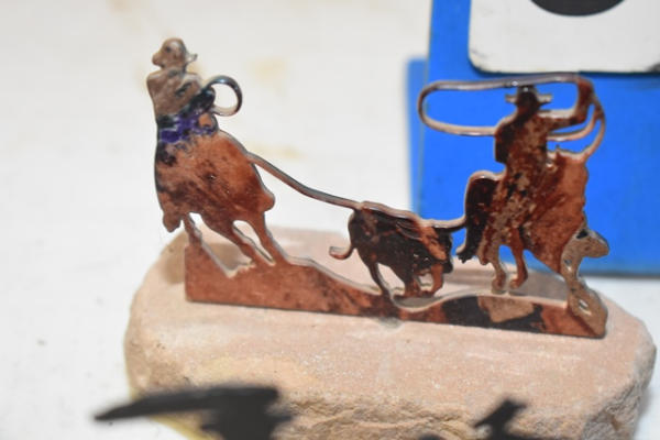 Toddler English stirrups, brass chin bumper, pair of cross conchos, roping rodeo silhouette, weight tape, garder straps, brass cart stops