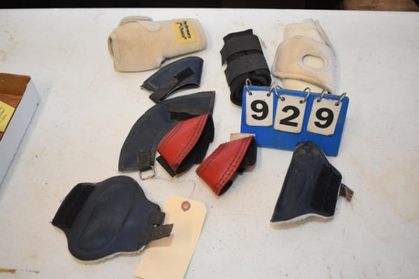 Performers Choice Sports Medicine Boots for miniature horse, black neoprene splint boots, blue fleece lined splint boots, 2 pair of unweighted Bell boots