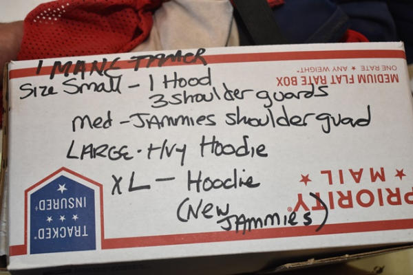 Lot of 1 mane tamer sizer small, 1 hood, 3 shoulder guards, medium jammies and shoulder guard, large heavy hoodie, extra large hoodie, new jammies