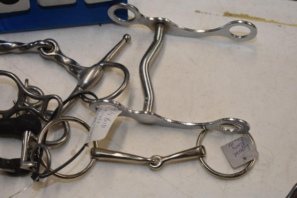 Lot of 5 4 1/4" pony bits including Crescendo and twisted bridle bit and a pelham bit