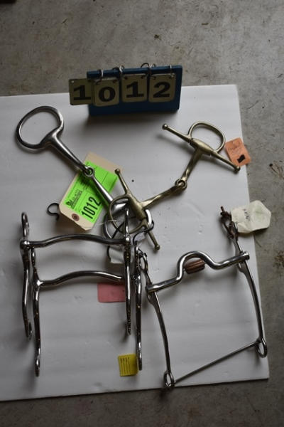 Lot of 5 6" bits including 3 grazing type bits, a Never Rust Slow Turn Twisted Wire full cheek snaffle (Made in England), and an egg butt snaffle