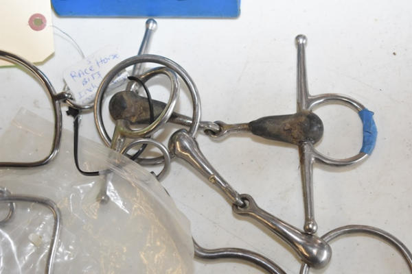 Lot of 5 5" bits including a 5" race horse bit, 2 new Chiffneys, a full cheek snaffle and an O-ring snaffle