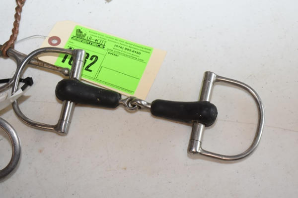 Lot of 5 4 3/4" bits including an egg butt slow twist, a rubber mouth d-ring, a full cheek copper twisted wire, a slow twist full cheek and a Never Rust (Made in England) full cheek snaffle
