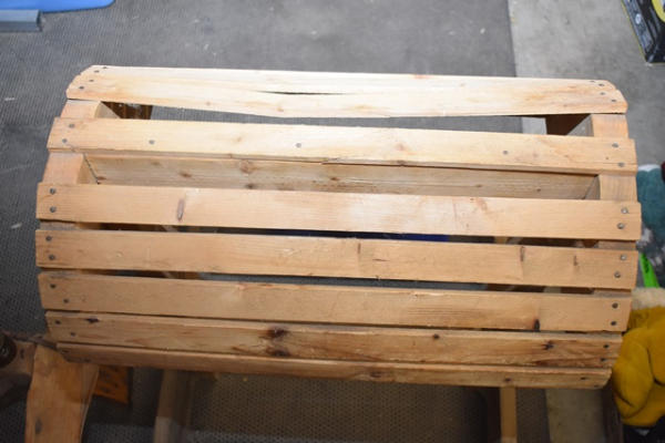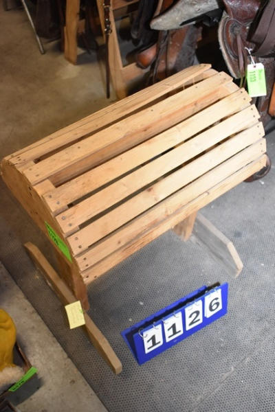 Wooden saddle stand, barrel type design on top for western saddles, 28" high x 22" x 23"