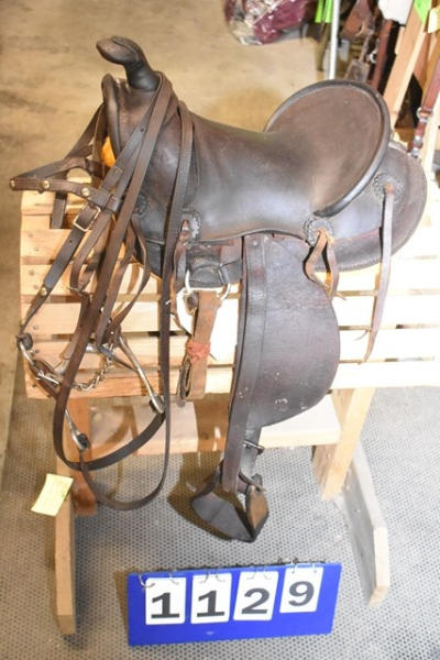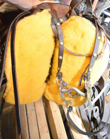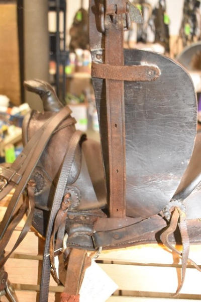 Kid's A fork vintage saddle, ready to ride with new fleece, has a matching bridle that is spotted, 11" seat with 5" gullet, cute kid's saddle