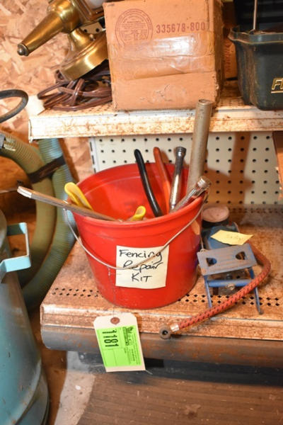 Tire pump and some fencing repair items including hole punch, fence tighteners, fence cutters, ratchet tools