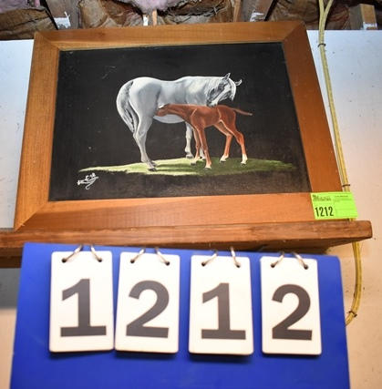Mare and Foal framed acrylic painting, 29" x 24", signed by the artist from 1998