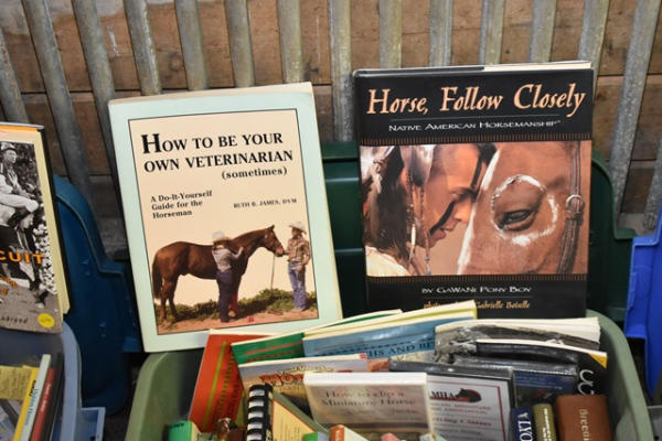 Lot of 3 GoWaNi Pony Boy books, 2 are autographed, 1 is not, several training books are arena exercises, veterinary care, John Lyons, breeding, driving, etc., there are 3 training videos and a couple coffee table books