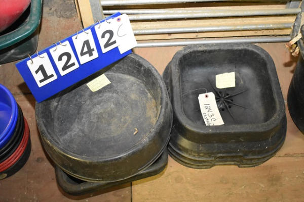 Lot of 2 round 18" diameter and 2 rectangular 20" x 15" pan feeder and 3 salt block holder drilled for drainage (17" x 17")