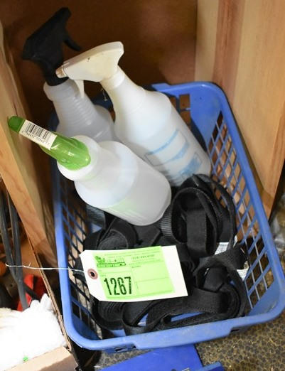 Lot of assorted stall signs with stall latch hardware, chain curbs, straps, boil donuts and misc. fleece for halters, slip-on spurs, etc.