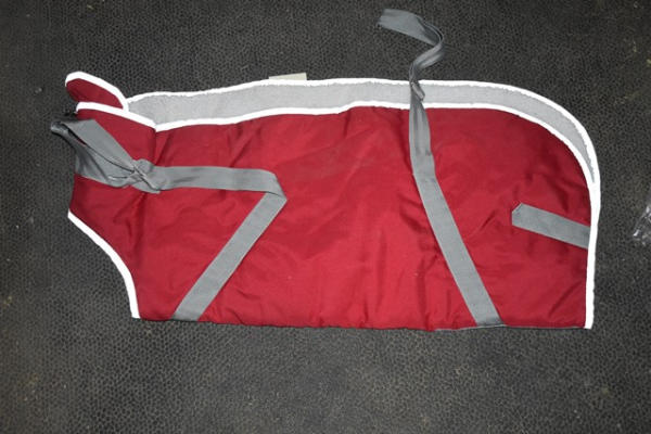 Size 34" fleece lined mini blanket with adjustable front closure, waterproof