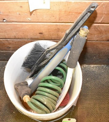 Wash bucket with collapsible hose, sponge, water blade and Oster scraper