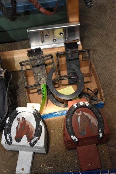 Salt block holders, 1 aluminum, 2 painted bridle hooks