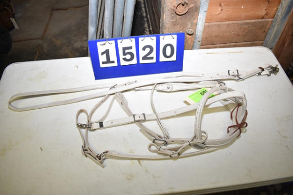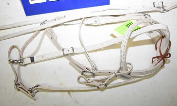 Horse size white trick ride parade set, bridle, reins and breast collar