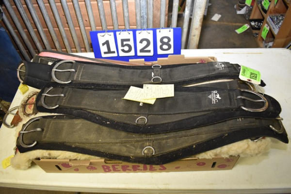 Assort girth lot consisting of professional choice removable neoprene, straight size 28, roper style sizes 28 and 32