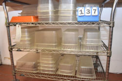 Large lot of plastic inset pans, ingredient bins, etc.