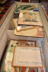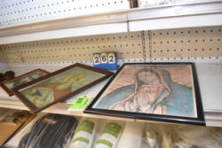 Shelf lot of religious pictures