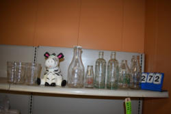 #272 - Shelf contents consisting of milk bottles, milk glasses and ceramic cow