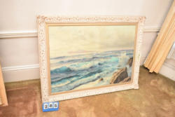 #285 - Framed painting on canvas, water scene, approx. 47" x 36"