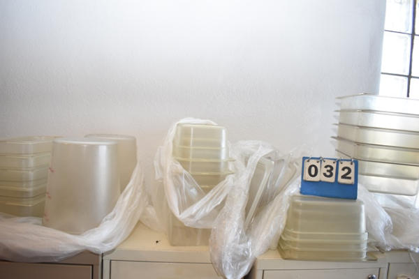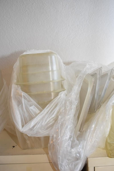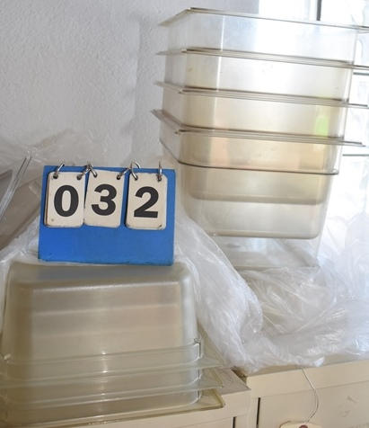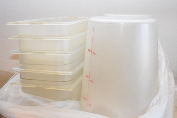 Assorted plastic inset pans and round mixing bowls