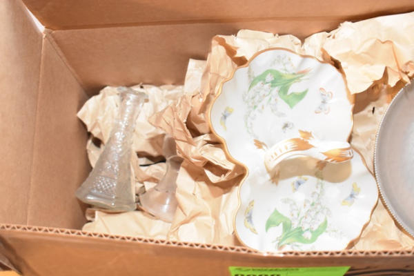 Box lot including vases, candy dishes, etc.
