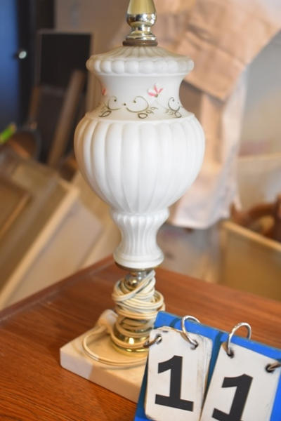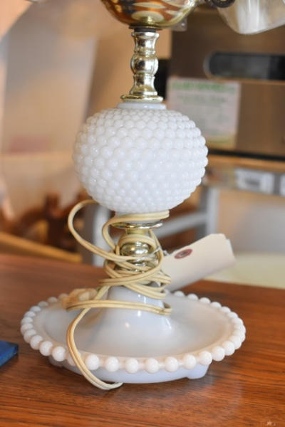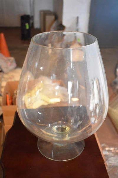 Assorted lamps and large brandy glass