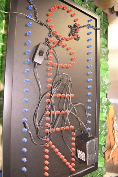 Lot including illuminated "Open" sign and olive print