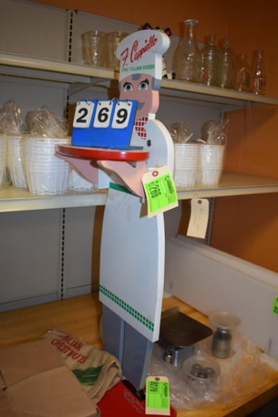 F. Cappiello stand-up figurine, approx. 40" tall with tray